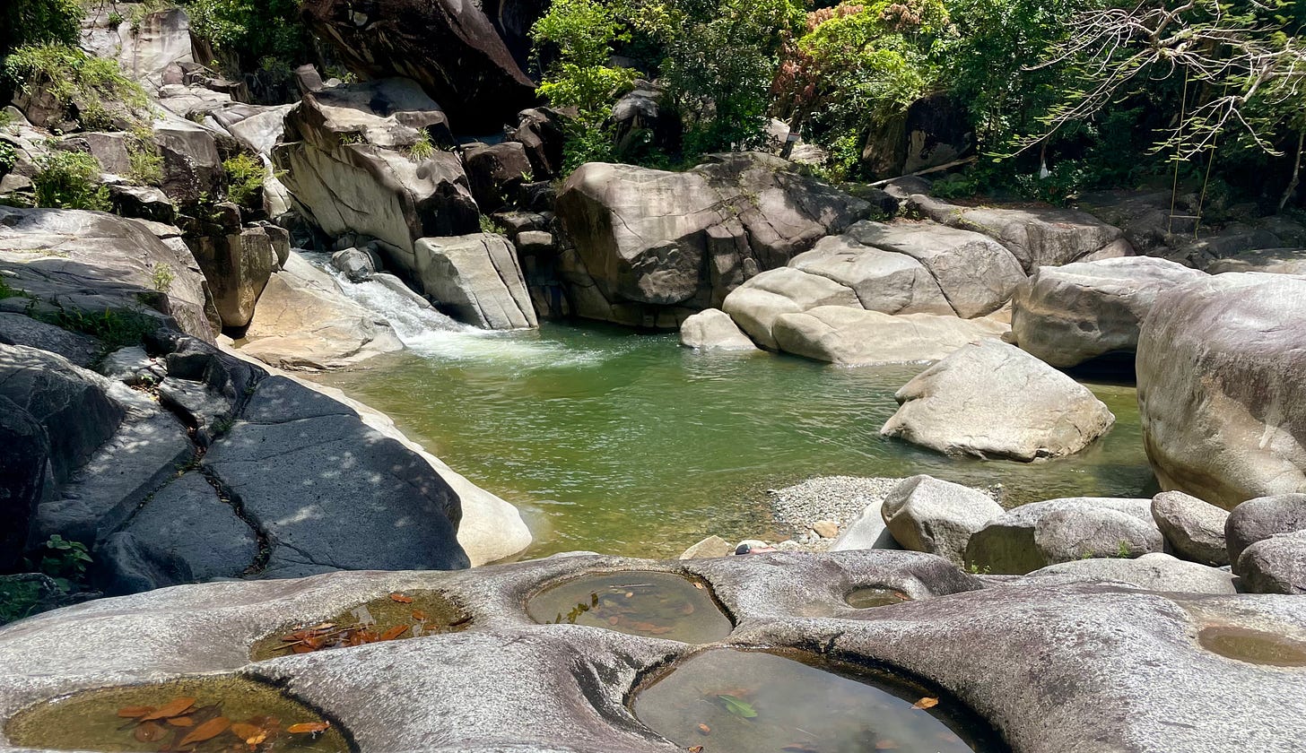 Our guide, Tristin, led us to a gorge surrounded by gigantic boulders and a waterfall that flowed into an emerald whirlpool.